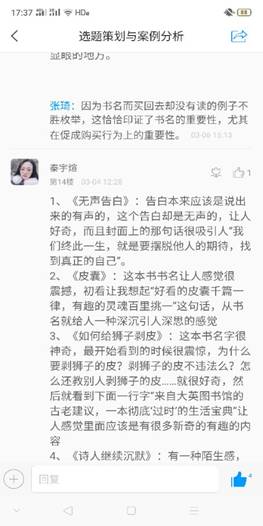 另外,本学期伊始,就将授课班级模拟为一家出版社,以小组为单位命名为一个编辑部,每个同学转换身份成为编辑部的策划编辑,老师则变身为选题决策者社长或总编, 在给大家布置了选题策划工作任务后,为大家发放从出版社拿来的选题申报表,请各“编辑”线上填写,并专门召开了各编辑部的线上选题论证会,大家通过这种模拟场景下的操练,熟悉了选题策划、论证、申报流程,作为老师,虽然这种模拟场景的教学需要付出大量时间与精力,比如为了选题论证的充分讨论,为了加强与每个同学的沟通,全班被分为8个编辑部,本人参与了八次选题讨论会,每次会议在两个小时左右,这样付出的时间精力是普通课堂教学的8倍以上,但是同学们的收获也是更加实实在在的。