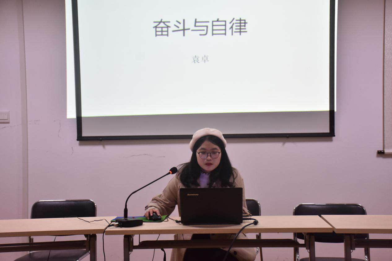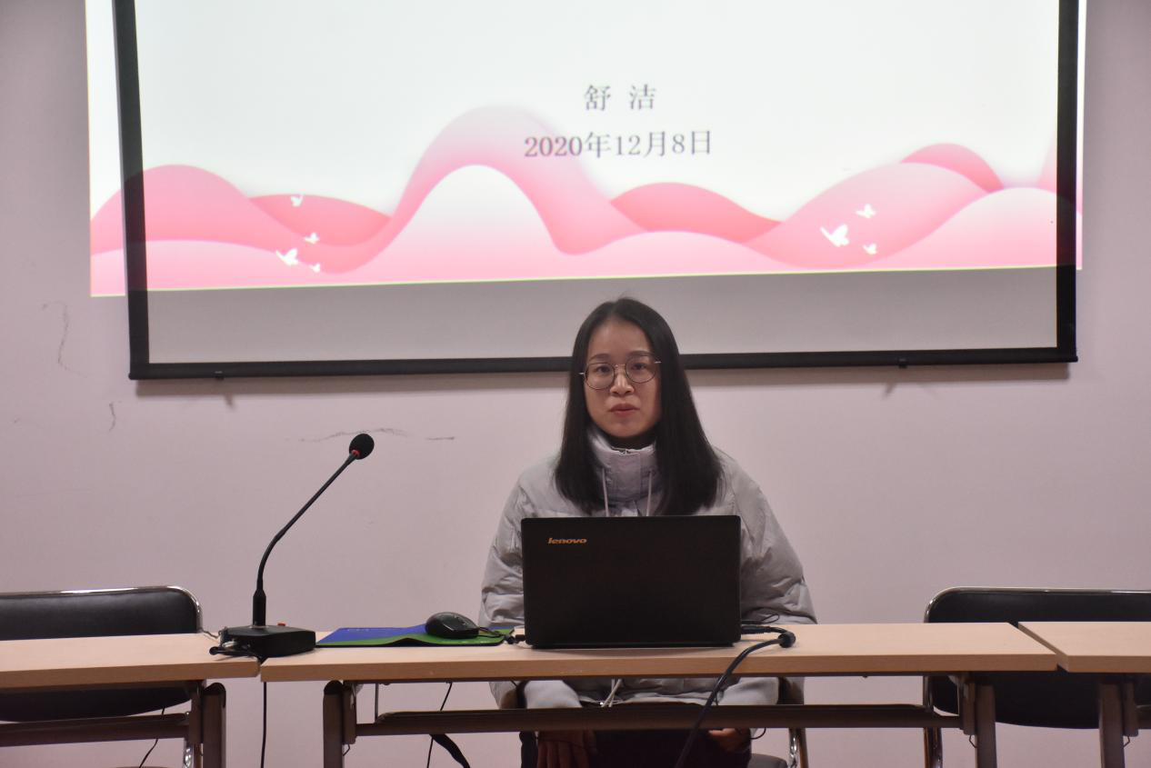 第三位分享的是历史文化公司的专业硕士研究生舒洁同学,她从四个方面向我们分享了她学习的经验:找准定位、设立目标;屏蔽干扰,摆正心态;脚踏实地,默默耕耘;结果既定,春暖花开。她说:“世界上天才很少,更多的是千千万万的普通人,说你其实没有什么天赋,之所以一直能够得偿所愿,主要在于你比别人更能坚持。”舒洁同学用自己的亲身经历向我们充分阐释了勤能补拙是良训的至理名言。