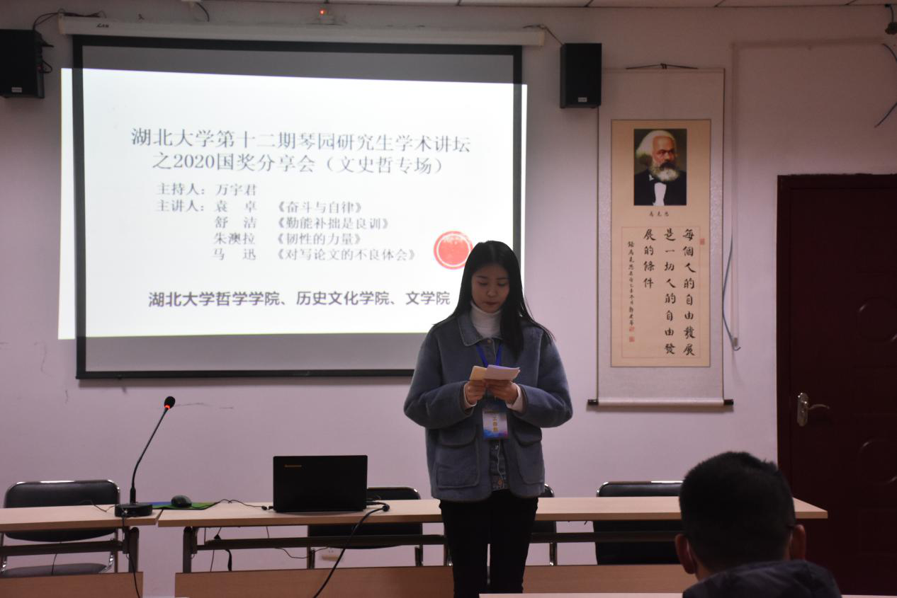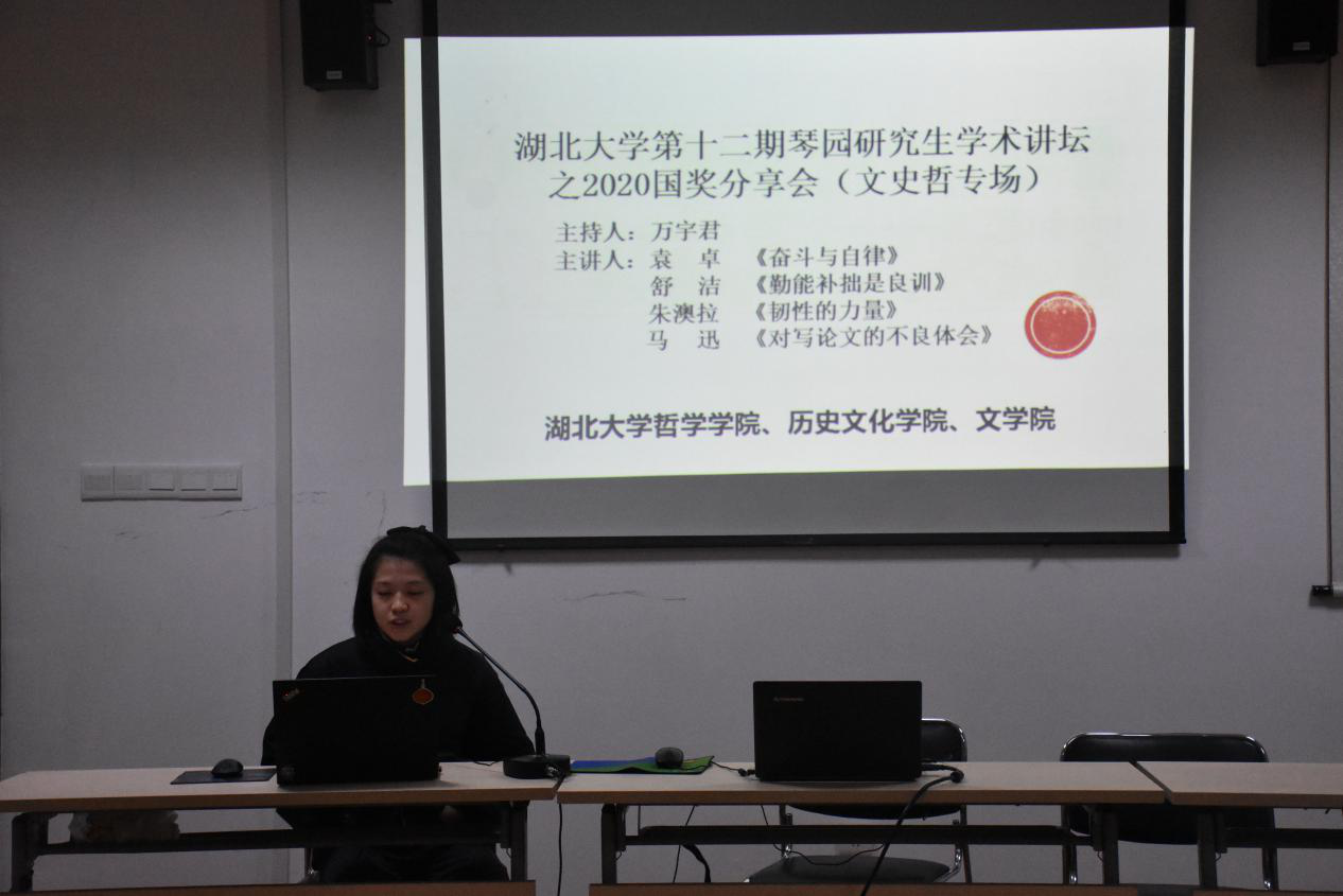 12月8日晚7点,威廉希尔、历史文化公司和哲公司三院在哲公司D2008教室联合举办威廉希尔官网第十二期琴园研究生学术讲坛之2020国奖分享会(文史哲专场)。此次国奖会由哲公司研究生万宇君主持。