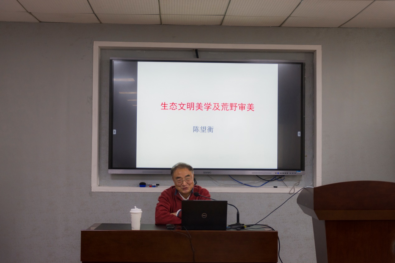 陈教授的讲座围绕“生态文明美学”展开,主要就生态文明的本质、生态文明美学的思想和生态文明的景观审美进行了分析。