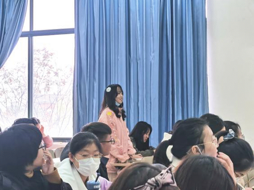 在2004班,赵玮涵除了采取同样的分组模式外,还设置了专门的成语猜谜游戏,全员参与将课堂的气氛渲染得十分火热。在课后经验分享中,她告诉大一同学“无论你们的梦想是什么,只有不断的学习,才能让你们在大四毕业的那一刻,离你们的梦想越来越近而不是越来越远”。