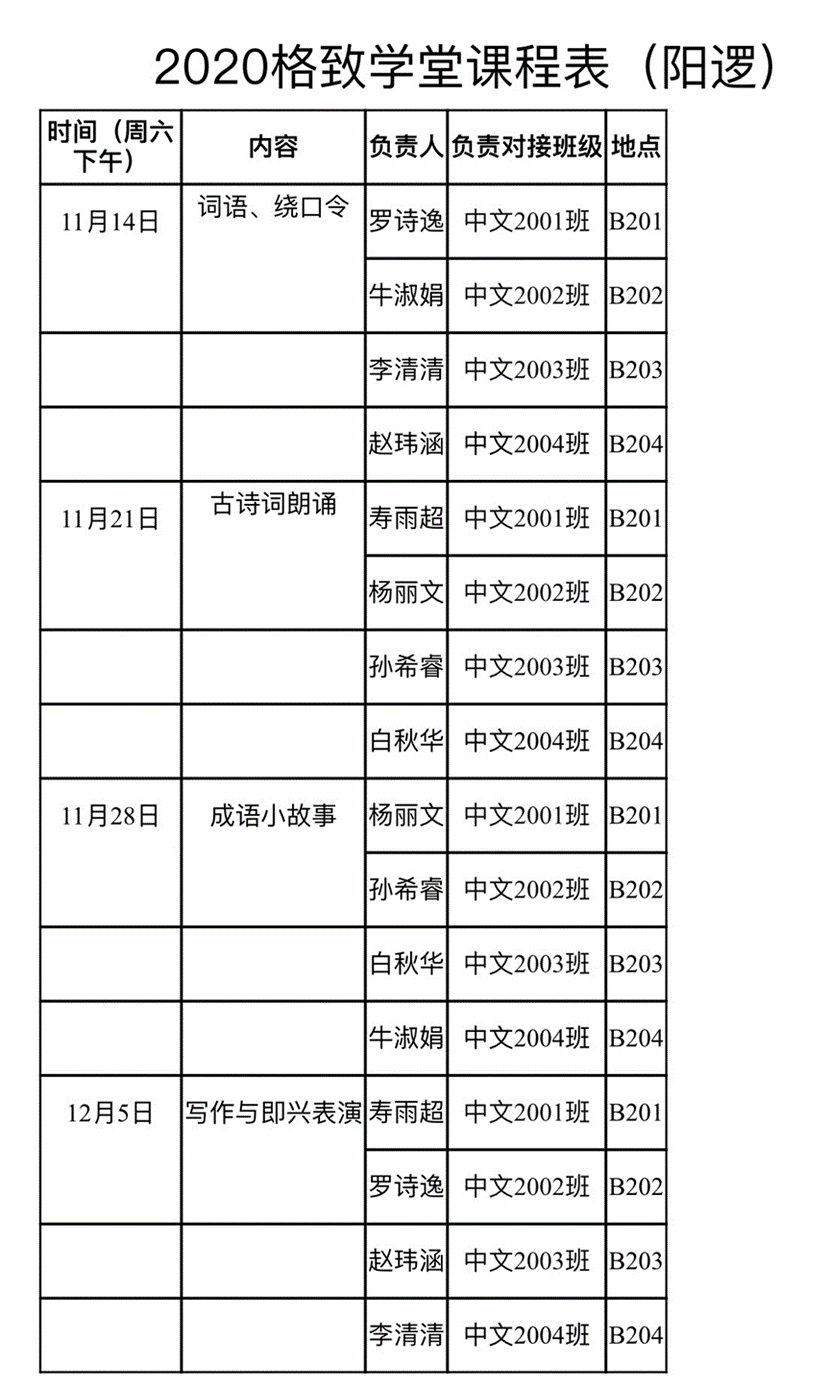 11月14日下午,“格致讲堂”第一讲——“词语、绕口令”,在通识教育公司拉开序幕。来自汉语国际教育18级的罗诗逸、汉语言17级的牛淑娟与李清清、汉语国际教育17级的赵玮涵,分别为2020级中国语言文学类专业的员工进行讲课。
