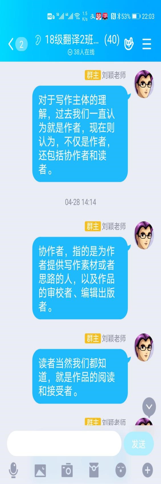 根据我自己的使用体验和员工的反馈意见,学习通平台在教学高峰时段偶尔会出现网络拥堵、信号不畅的情况。因此,我将学习通平台主要用作上课签到、发布课程公告,另为所有任教班级分别建立了课程QQ群,将课堂讨论、练习、作业发布和课程考查等放在课程QQ群里进行,利用腾讯QQ网络平台,保证了课程教学工作的顺畅进行。