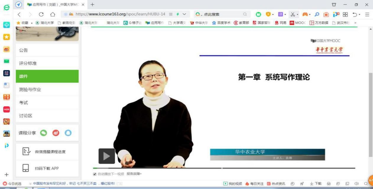 图4.中国大学慕课网上华中农业大学袁琳老师主讲的《应用写作》慕课截图