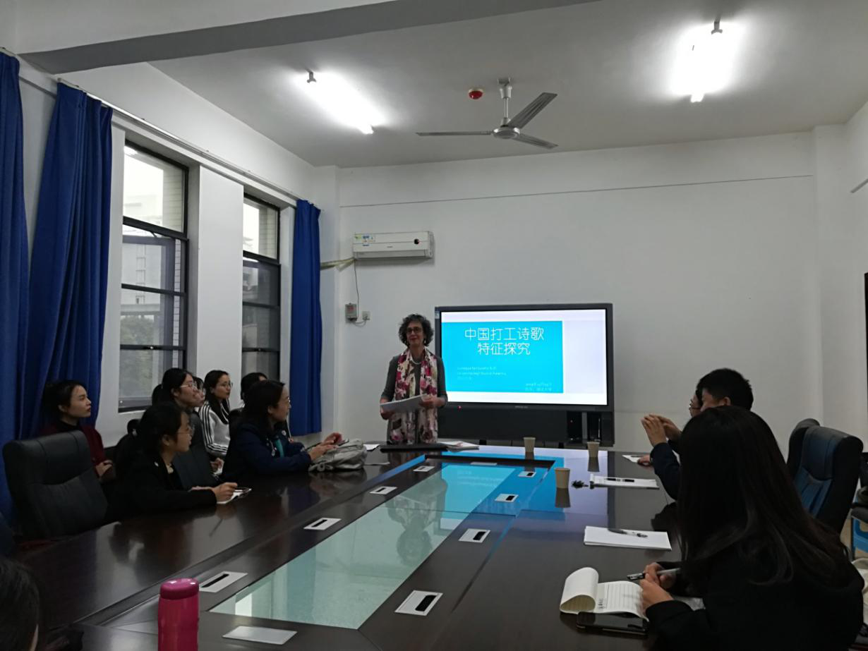 2019年11月13日下午,受威廉希尔官网邀请,意大利汉学家朱西女士在逸夫人文楼B5018会议室为我们带来一场题为“一个意大利学者眼中的中国打工诗歌”的讲座。讲座由刘继林副经理主持,公司部分老师、研究生参加了讲座。