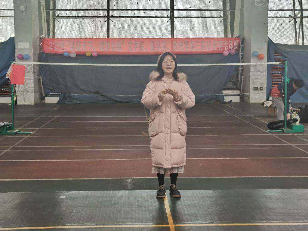 经过了短暂的热身,比赛正式开始,队员们以饱满的激情投入到了比赛中。虽然馆外天气寒冷,但馆内的选手们热情洋溢,全情投入到比赛中,裁判和围观的同学不时发出赞叹。经过了几个小时的激烈角逐,参加半决赛和决赛的选手们更是热情高涨。赛场上,选手们奋力厮杀,高远球、跳起杀球、拉后场、杀对角等各种球技令人目不暇接,喝彩声、加油声、欢呼声回荡在体育场里。