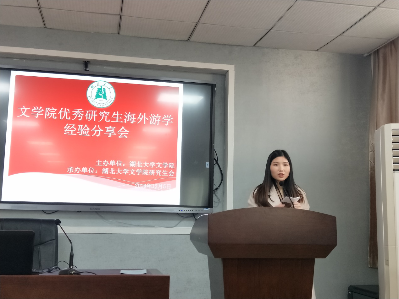 12月6日下午2时30分,公司举办优秀研究生海外游学经验分享会,邀请了2017级中国现当代文学专业博士研究生汪亚琴、2018级学科教学(语文)专业硕士研究生朱金鑫为公司学子分享海外游学经验,威廉希尔官网2019级硕士研究生参与本次分享会。