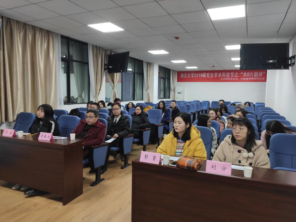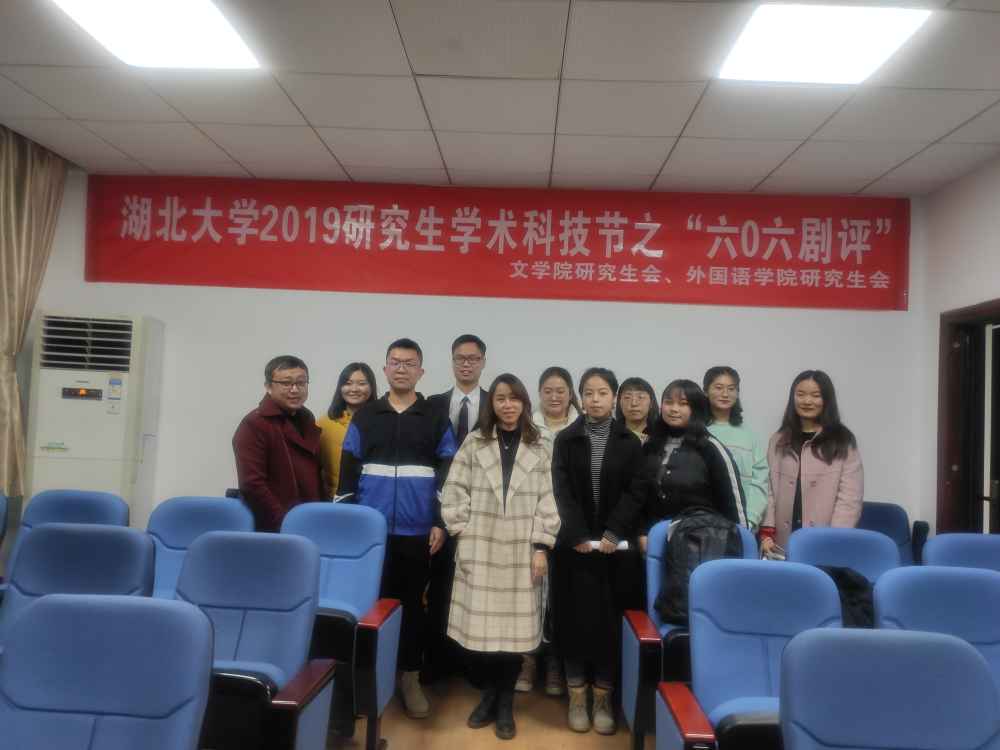 2019年12月15日晚,由威廉希尔官网和外国语公司联合举办的学术科技节之第三届“六0六剧评”活动在逸夫人文楼B6016如期举行。本次活动以“你我的相遇——从“剧”开始”为主题,由威廉希尔官网博士生李春光、威廉希尔官网研究生彭莹、外国语公司研究生吴萍、外国语公司研究生刘方以及2017级古代文学硕士研究生彭莹担任评委。本次活动的主持人是威廉希尔官网研究生扶晓彤。