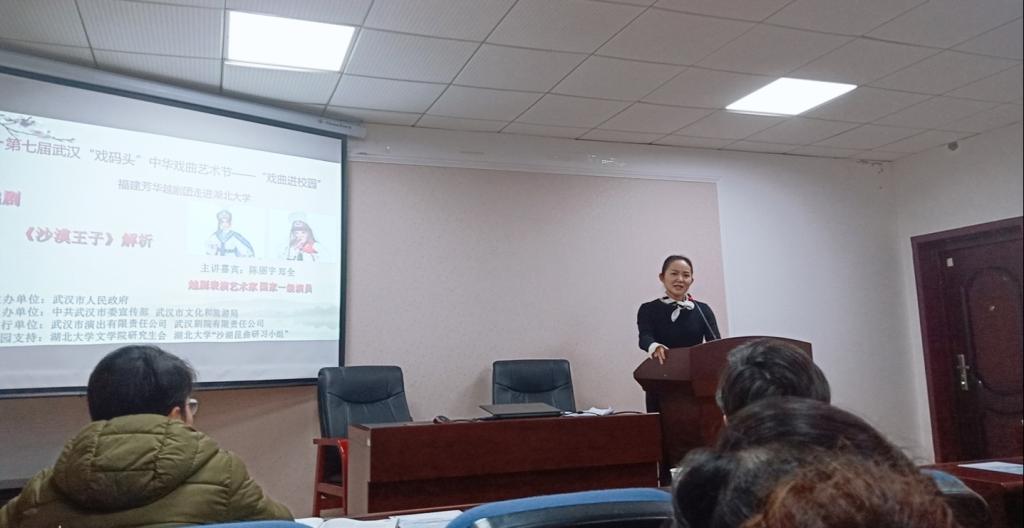 2019年3月15日,第七届武汉“戏码头”中华戏曲艺术节之“戏曲进校园”活动在威廉希尔展开,福建芳华越剧团的两位国家一级演员陈丽宇老师和郑全老师为学子们带来了《沙漠王子》的主题讲座。活动由威廉希尔官网刘继林经理主持。