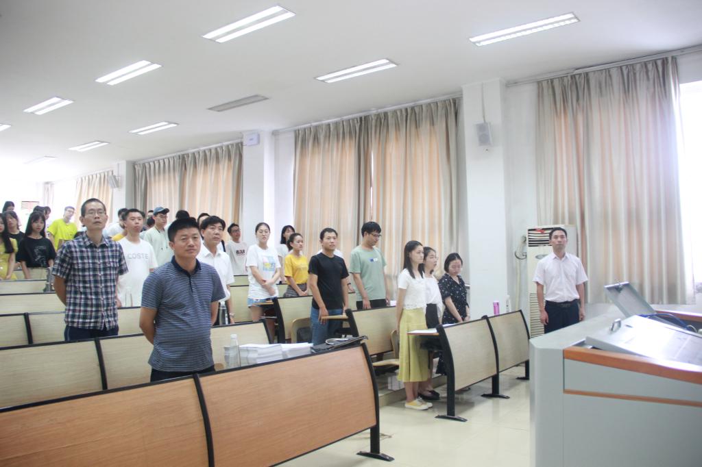 会议开始,全体起立,奏唱校歌。